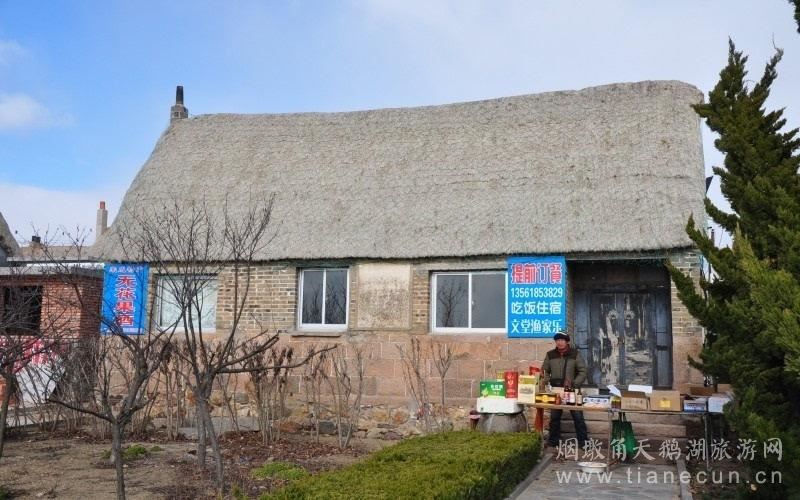 在烟墩角不仅能观赏到美丽的天鹅,而且还能看到一栋栋独具特色的海草房。这些海草房全部使用当地的石板垒建而成。屋脊上铺垫着厚厚的海草,造型美观,古朴典雅,尤其是冬暖夏凉,非常实用,是胶东沿海渔村一道独特的景观。