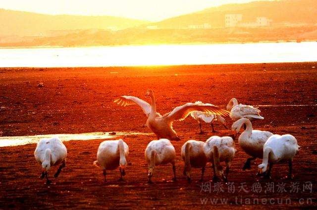 村里的渔民们把大天鹅当成好朋友,人人亲近大天鹅,人人爱护大天鹅每当村民或游客走进海湾投放食物时,大天鹅就不约而同地向岸边涌来,金色的玉米粒撒向蓝色的水面和洁净的沙滩,温文尔雅的大天鹅也都争相游到村民、游客周围,毫不防范地抢食嬉戏,稍远处的还贴着水面低飞而来。