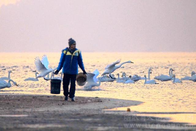善良的人们主动购买天鹅食料,以最大的能力投食喂养,金钱此时显得那么的微不足道,只要它们能吃饱,有充足的体力完成遥远的迁徙那才是心灵最大的慰藉。