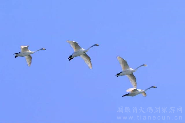 清晨是天鹅最活跃的时候,也是练习展翅飞翔的最佳时机。大天鹅飞向西伯利亚迁徙总里程少则两三千公里,多则四五千公里,花费时间,大约在1个月左右。在如此漫长的旅程中,它们要在高山雪岭中抵御严寒,在风雨雷电中奋勇飞翔,还要在飞行的过程中寻找食物。大天鹅善于高翔天宇,据有关记载,天鹅的飞行高度应该超过9000米。这个高度,使大天鹅成为世界上飞得最高的鸟类之一。它们能在一个晚上飞行近500华里。所以现在他们天天练习翱翔,去迎接最残酷的考验。